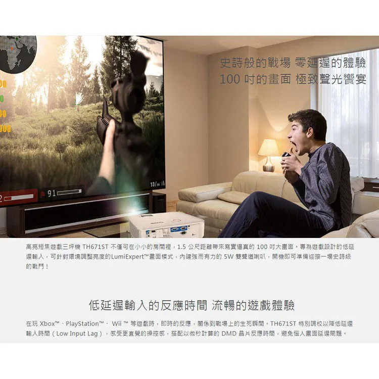 商品OPTOMA GT1080HDR Full HD 3800流明 高亮度短焦家庭娛樂投影機