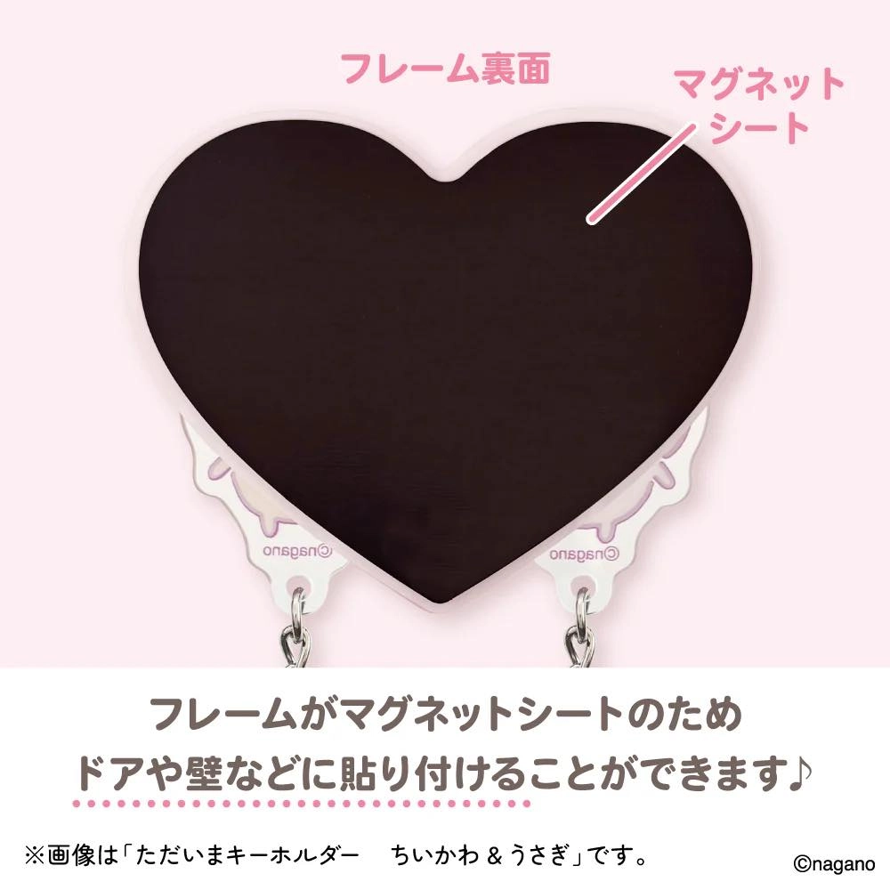 每個鑰匙圈包含兩個可拆卸的角色吊飾,平時隨身攜帶,回到家後則將鑰匙圈放回心形框架中。