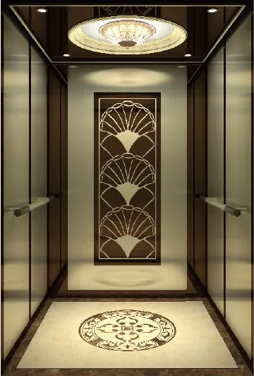 天花板:古銅鏡面不銹鋼,藝術燈,香檳金裝飾條,LED嵌燈 後側壁板:古銅鏡面不銹鋼,香檳金髮紋不銹鋼,古銅鏡面蝕刻 兩側壁板:古銅鏡面不銹鋼,香檳金髮紋不銹鋼 扶手:古銅和香檳金組合扶手 地 板:PVC/大理石