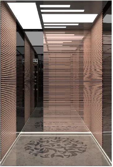 兩側壁板:黑鈦鏡面不銹鋼,玫瑰金金屬裝飾條,LED燈帶