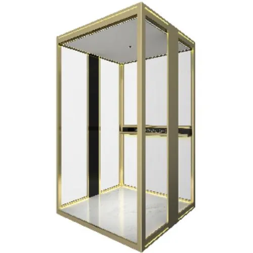 天花板:鋁合金邊框,彩妝鋼板,燈帶,LED嵌燈 後壁板:鋁合金邊框,雙層鋼化膠合玻璃 兩側壁板:鋁合金邊框,雙層鋼化膠合玻璃,黑鈦不銹鋼 扶手:無 地板:PVC/大理石(硬質/天然)