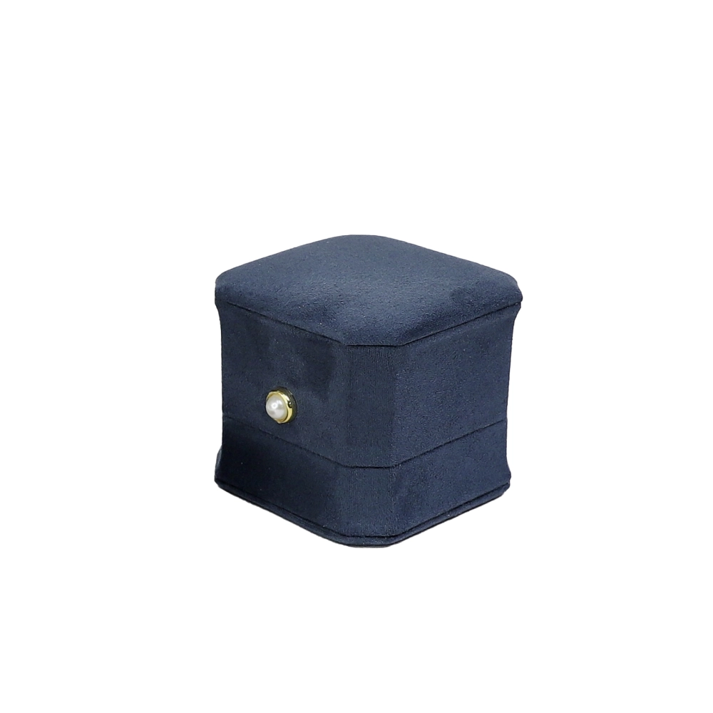 • 湖藍八角麂皮布戒指盒(小)