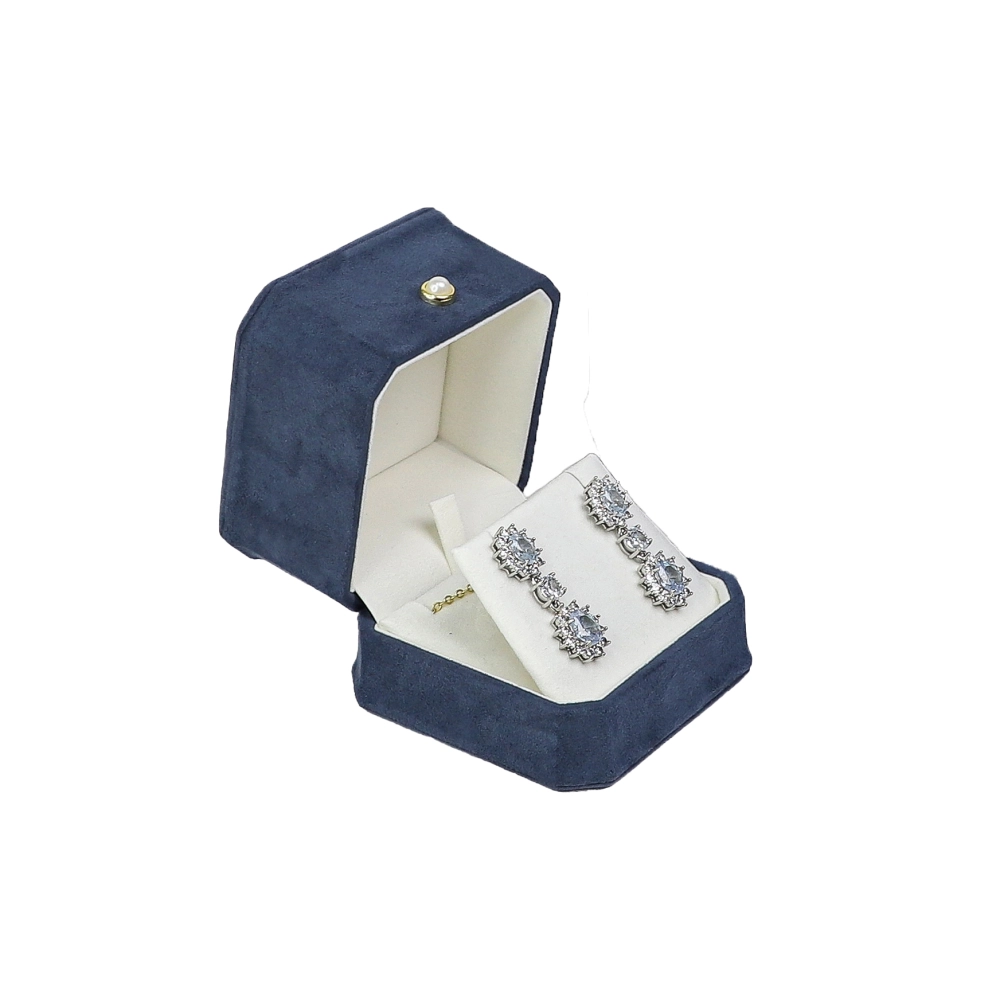 • 湖藍八角麂皮布耳環盒