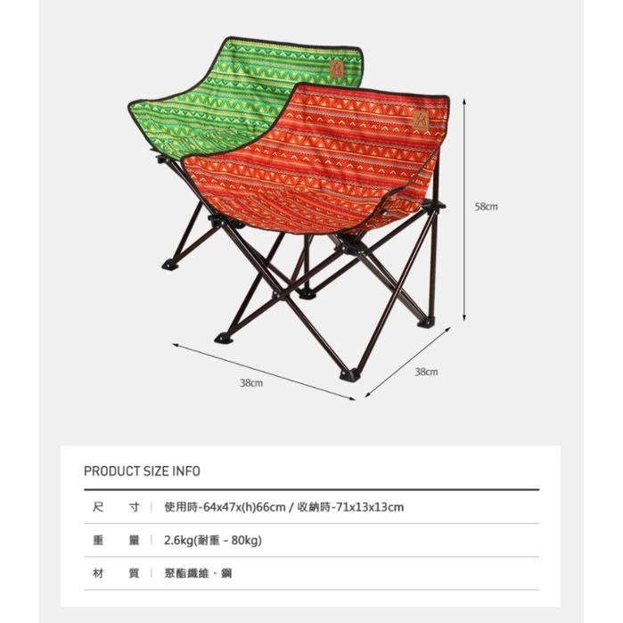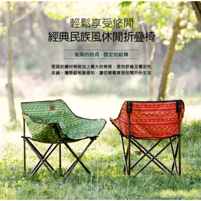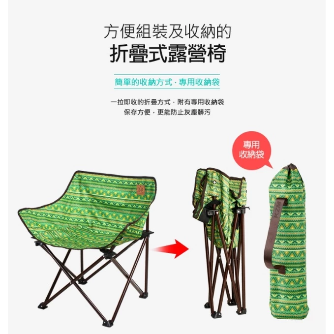 【綠色工場】KAZMI KZM 經典民族風休閒折疊椅 休閒椅 露營椅 收納椅 鋁合金椅 兒童椅 (K6T3C001)