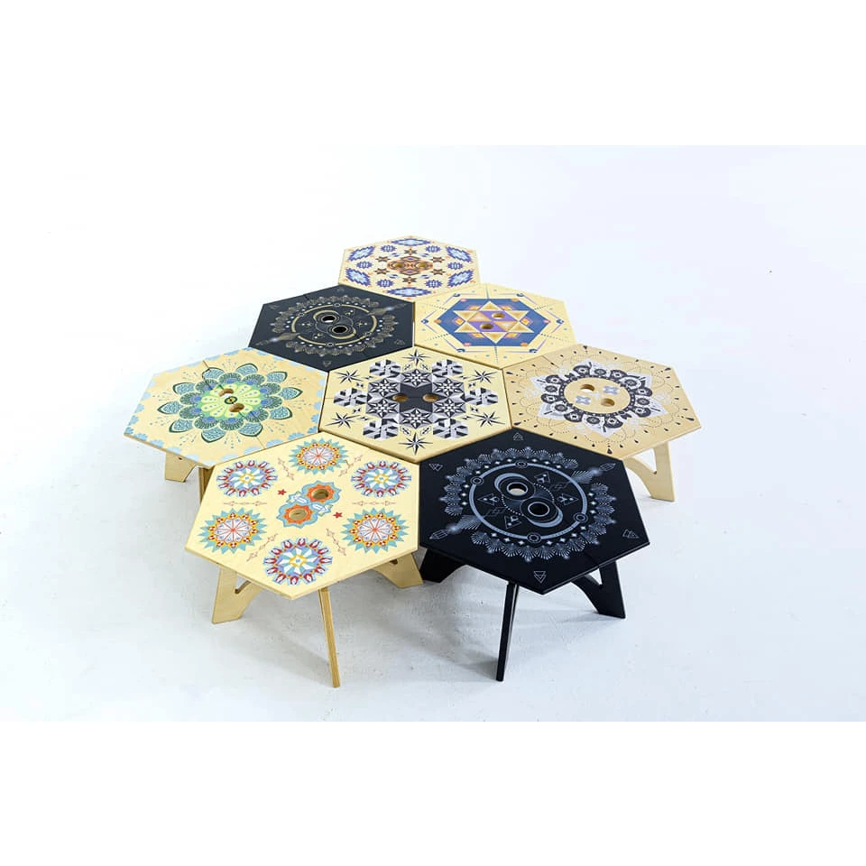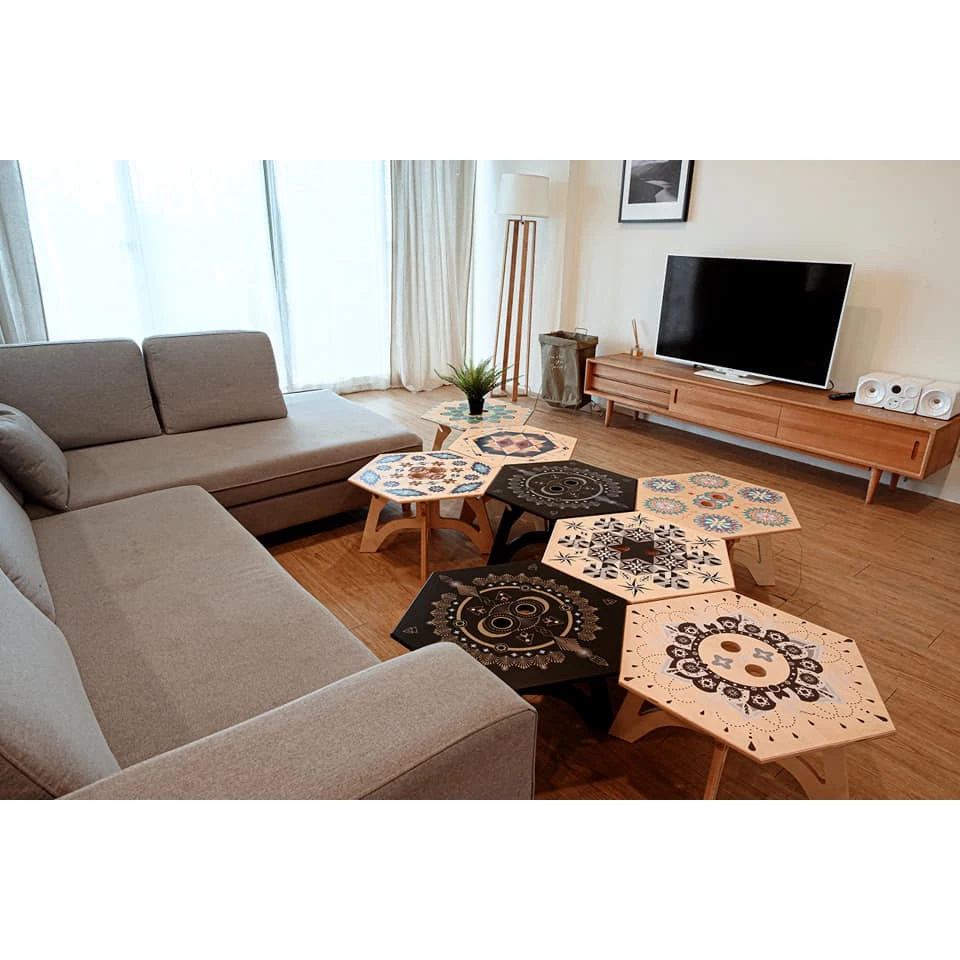 【綠色工場】TKS 六角蜂巢小桌 實木桌 露營桌 茶几 六角桌 帳內桌 木紋桌 露營小桌 居家茶几 家飾擺設 露營 戶外