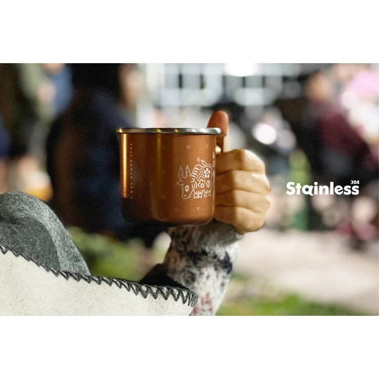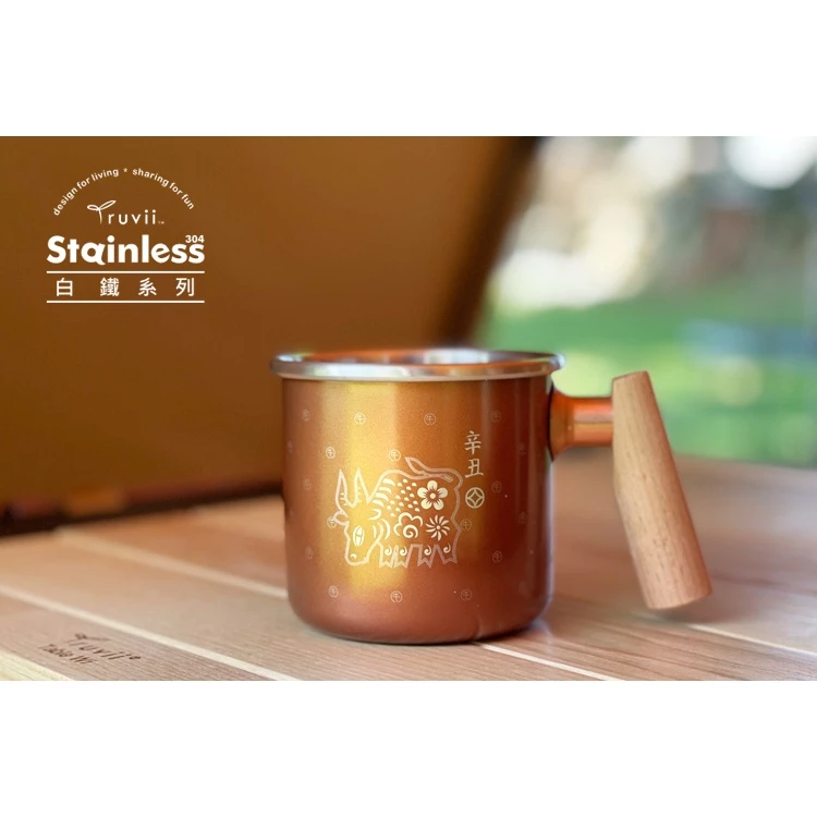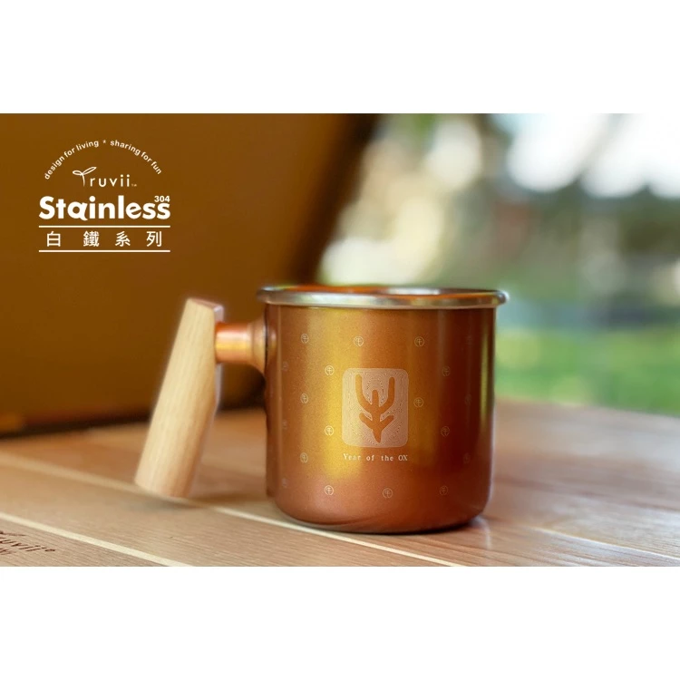 【綠色工場】Truvii 木柄白鐵杯400ml ~~辛丑金牛杯 咖啡杯 馬克杯 不銹鋼杯 露營 戶外
