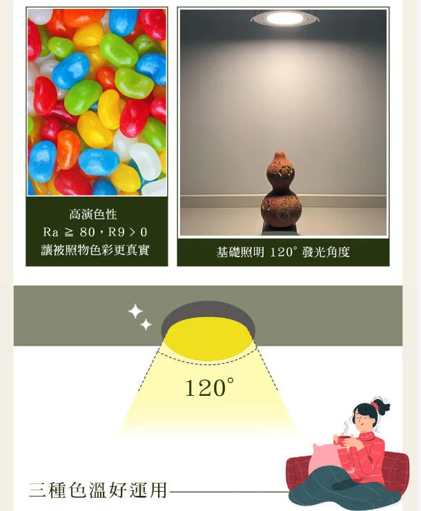 5. 高演色性 Ra ≧ 80,R9 > 0,讓被照物色彩更真實