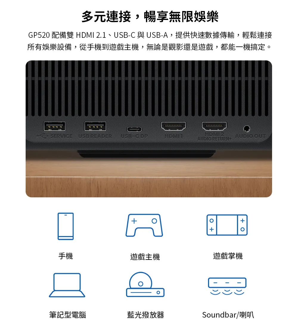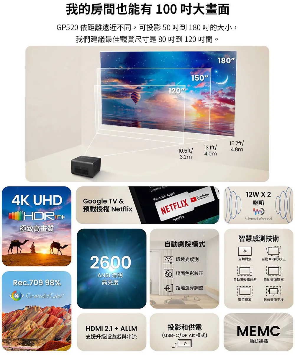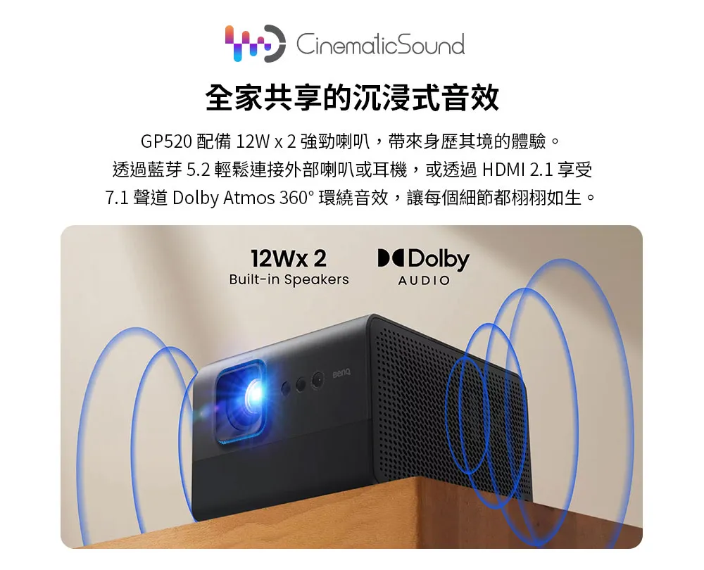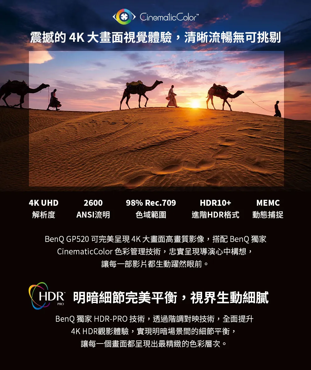 GP520 | 4K UHD 2600流明 智慧調光 家庭劇院投影機