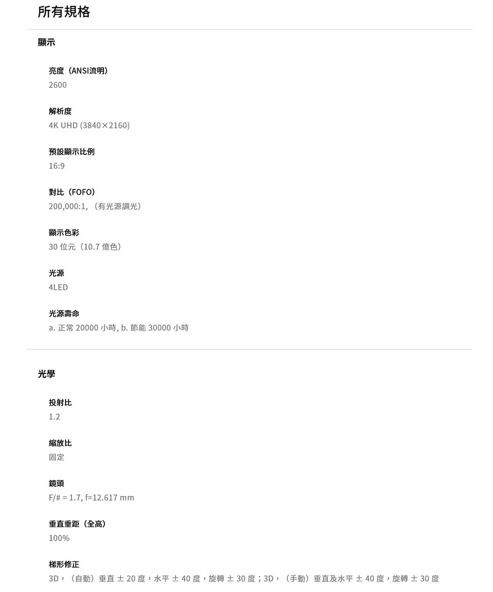 商品EPSON EH-LS650W 3600流明 4K PPO-UHD 低延遲 電玩雷射投影機 贈Google 電視棒