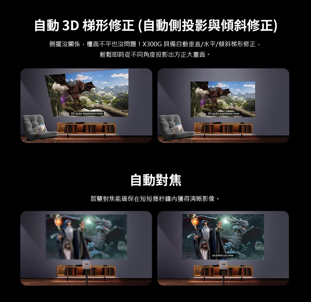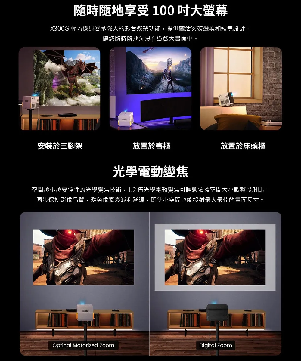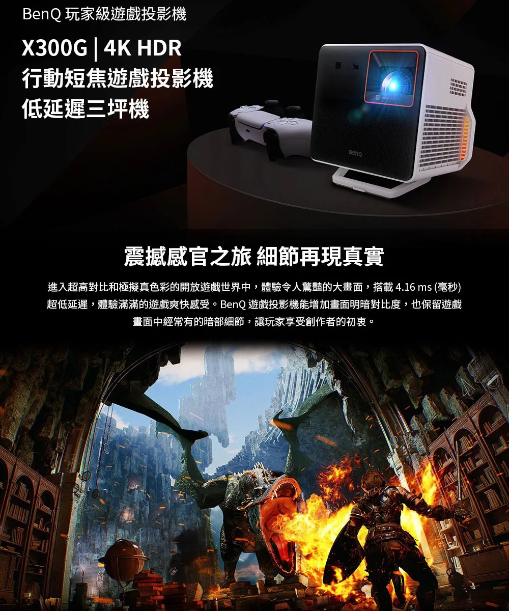 X300G | 4K HDR 行動短焦遊戲投影機,低延遲三坪機