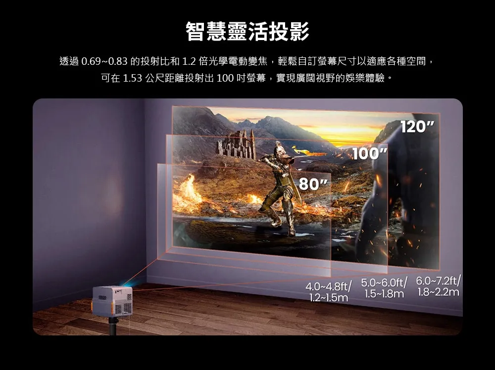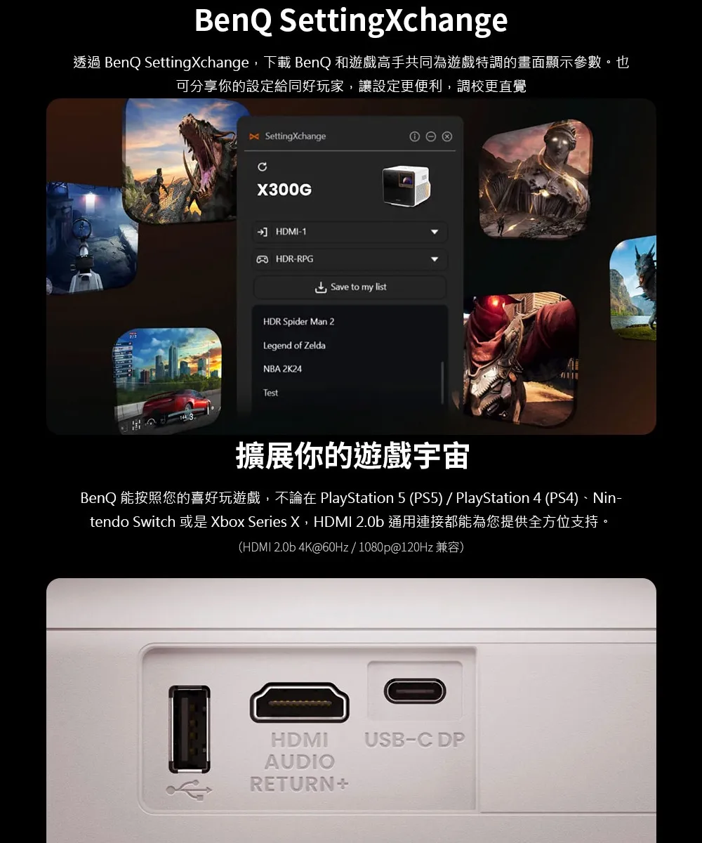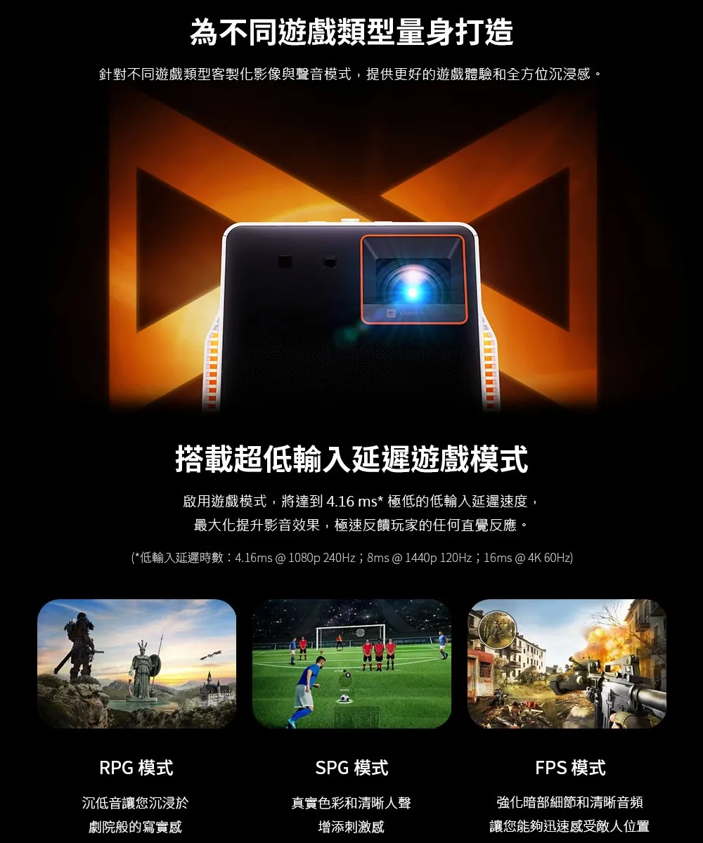 X300G | 4K HDR 行動短焦遊戲投影機,低延遲三坪機
