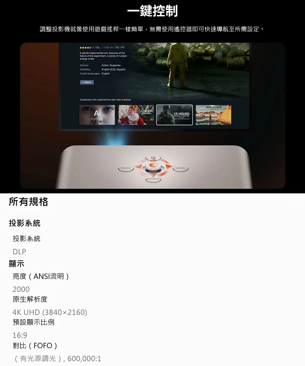 商品OPTOMA L1+ 4K UHD 4K超短焦家庭劇院投影機