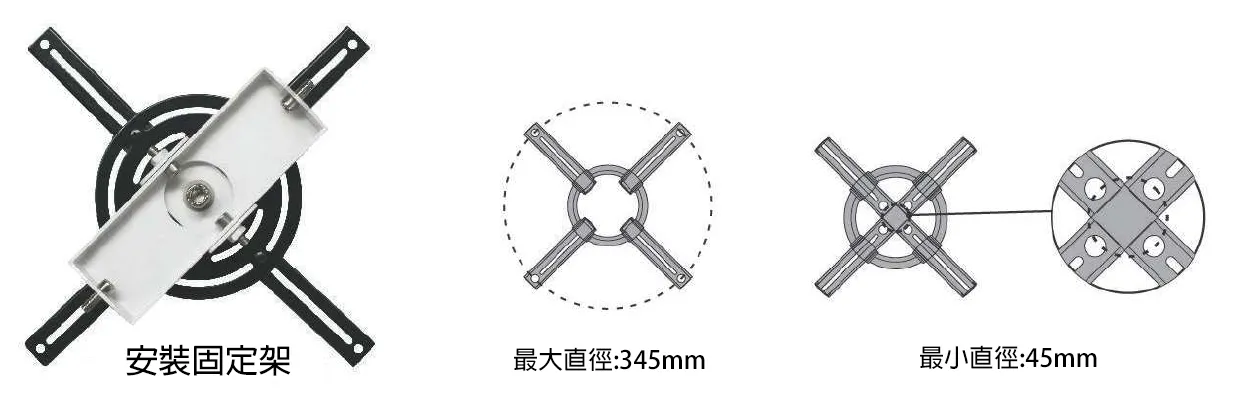配備多孔安裝面板,可適合各種不同類型投影機安裝。