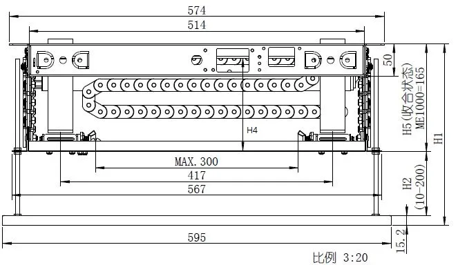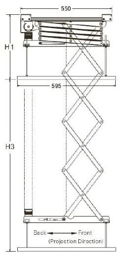 | 升降架型號 | 升降行程 H3(mm) | 框架高度 H5(mm) | 下框架高度 H2(mm) | 最大負荷 (kg) |