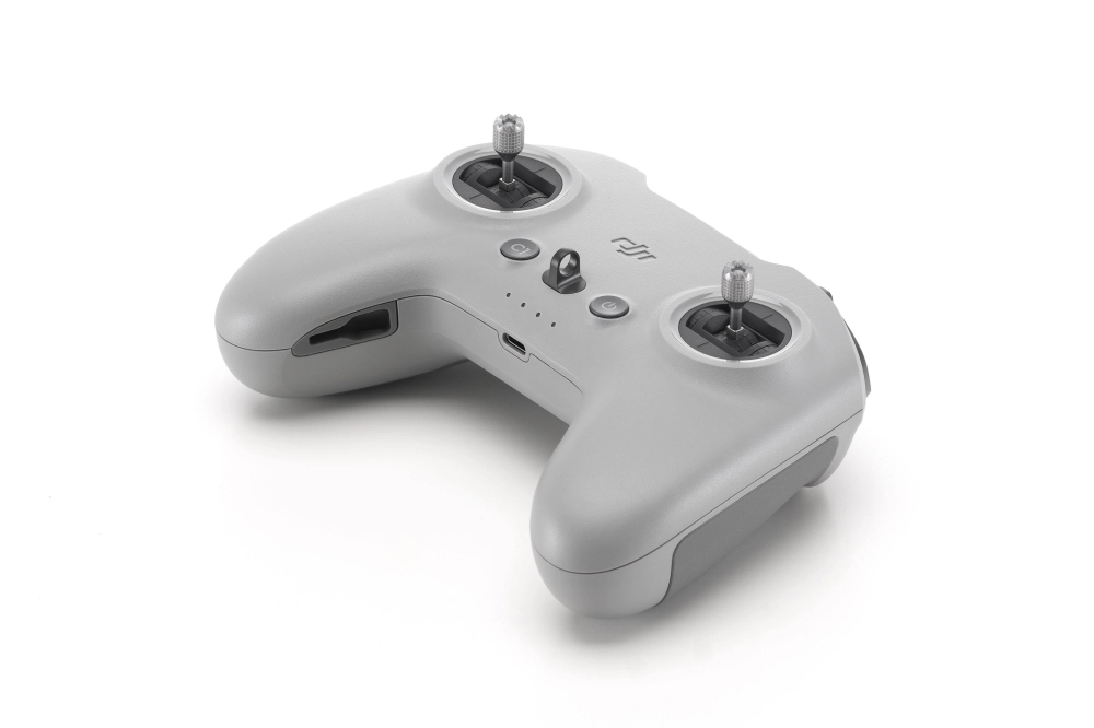 與 DJI O4 影像傳輸相容,內建天線設計,較上一代重量更輕,但續航時間更長;搖桿長度增加 2 公釐,可兼顧單指和雙指操控。