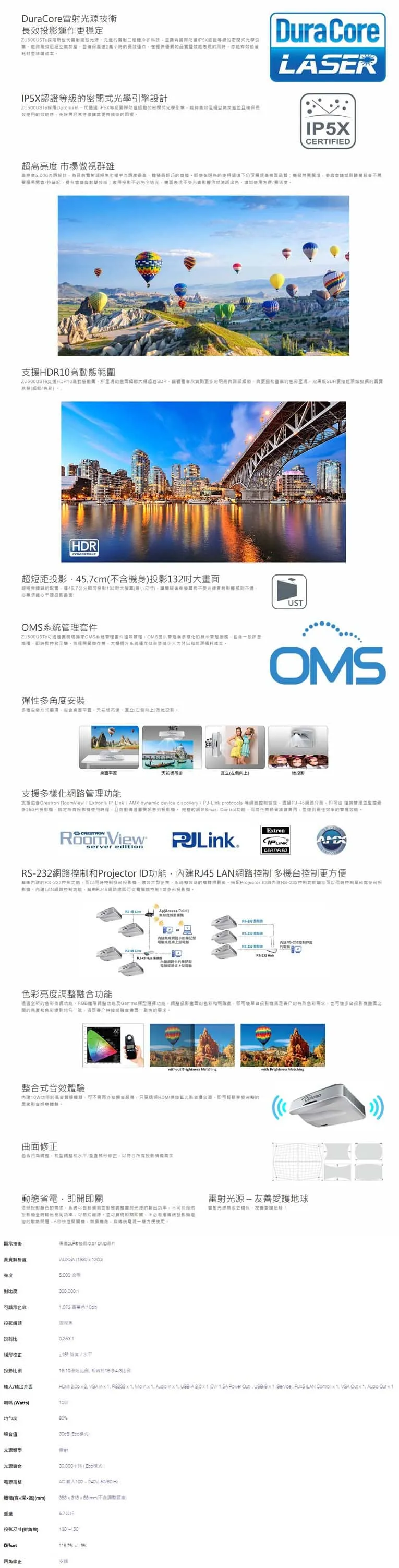 IP5X國際防塵認證,30,000小時雷射光源壽命(Eco模式)