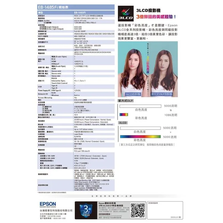 商品EPSON EB-735Fi 超短焦 3LCD 3600流明雷射投影機 1080P 原廠公司貨 3年保固