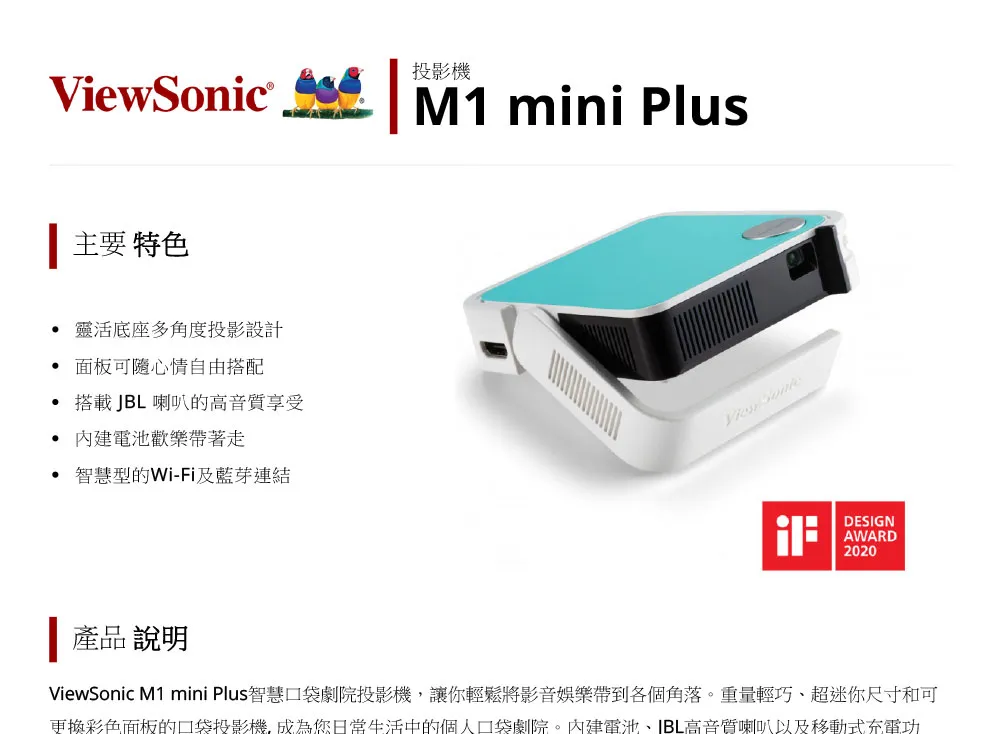 | 畫面投射距離 | 0.64m-2.66m (38″ @1m) | |