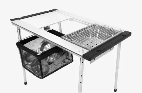 IGT 網袋與桌子相連,提供高效的存儲空間,以便在露營時整齊地整理和存放必要的物品。