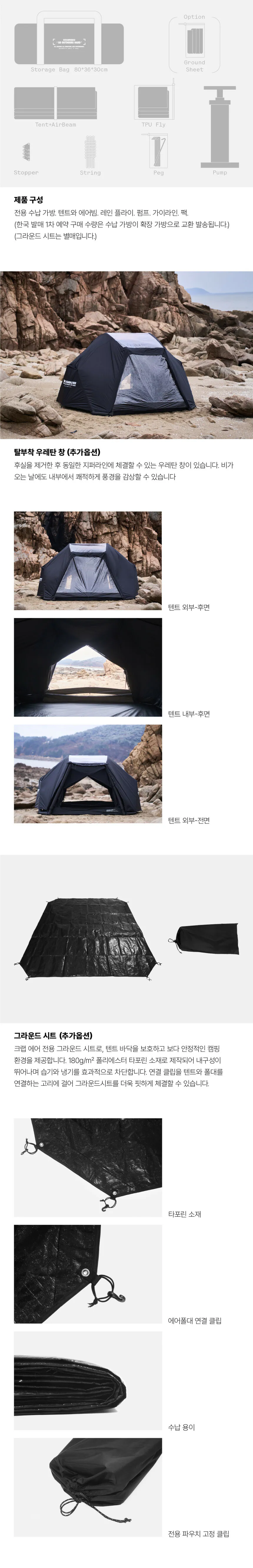 AIR BEAM 氣柱系統:採用單一氣閥注氣系統,搭配多氣室結構,並配有自動洩壓閥,確保帳篷穩定性與安全性。