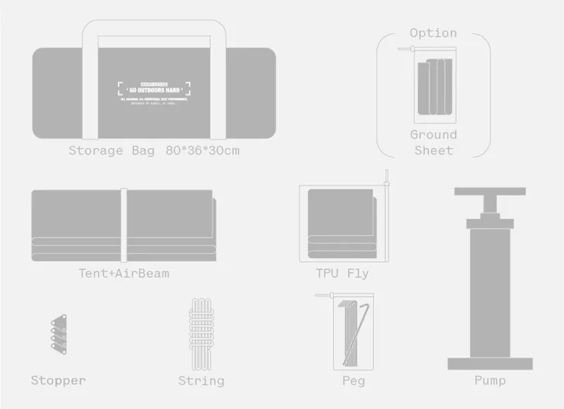 充氣幫浦:配備螺旋結合接頭的充氣幫浦,方便快速搭建帳篷。
