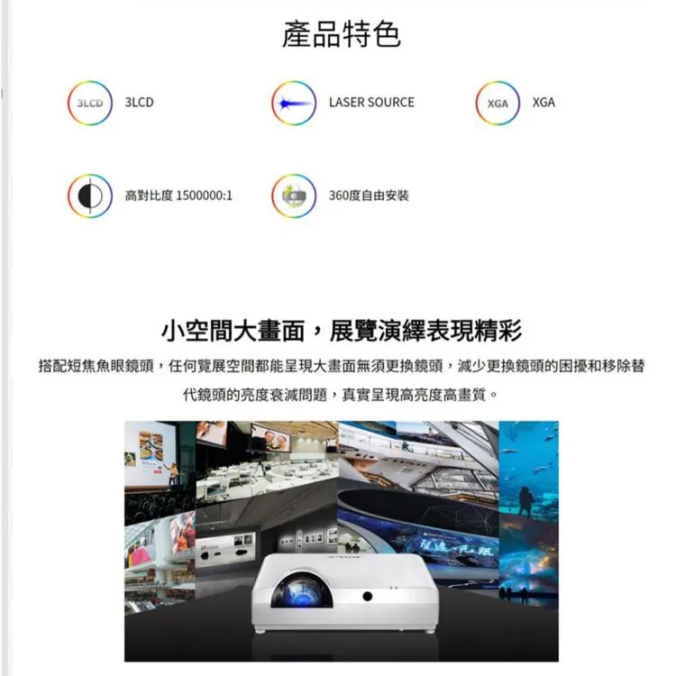 商品ROLY RL-S400W WXGA,3500流明 顛覆傳統雷射短焦投影機 小空間大畫面長效鐳射畫面
