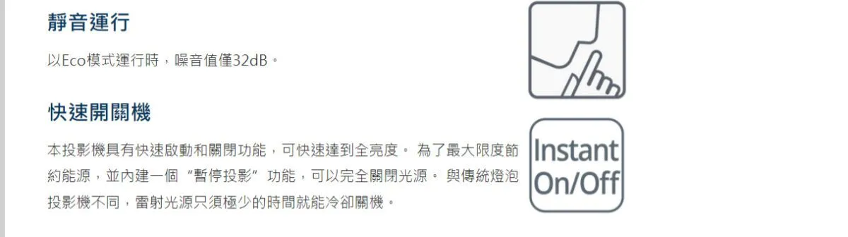 消耗功率明亮模式 : Typical 414W MAX 476W @ 110VAC Typical 386W MAX 444W @ 220VAC ECO模式 : (50%) Typical 191W MAX 220W @ 110VAC Typical 187W MAX 215W @ 220VAC
