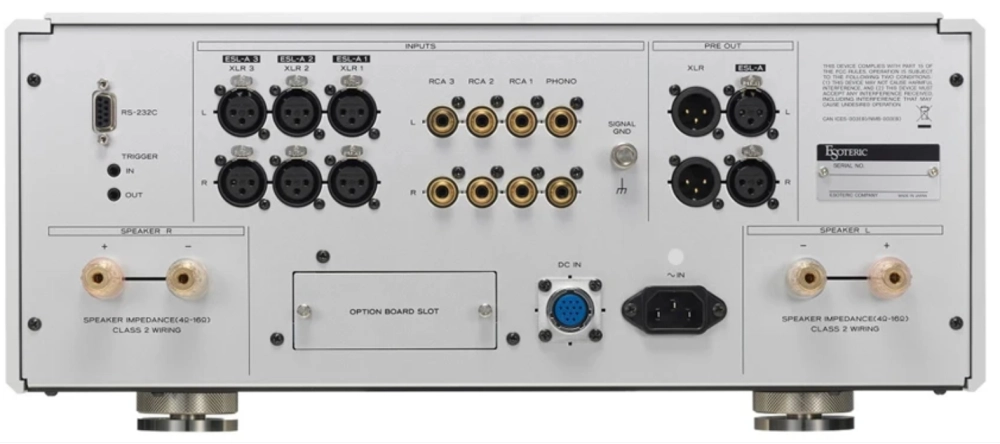 它融合了旗艦Grandioso C1X前級擴大機研發過程中累積的眾多新技術,在功能和音質方面均實現了顯著提升。這款大型全平衡雙單聲道前級放大器,外觀如同獨立前級放大器,標配三個ES-LINK類比輸入介面。透過與Esoteric K/N系列數位播放器進行電流傳輸連接,您可以獲得如同在錄音室直接監聽類比混音器般的現場音效體驗。音量控制部分採用了我們獨有的“超保真衰減系統”,電源部分也得到了進一步的增強。其他重要的前級擴大機功能還包括全平衡耳機擴大機、唱頭擴大機和高品質三段均衡器。