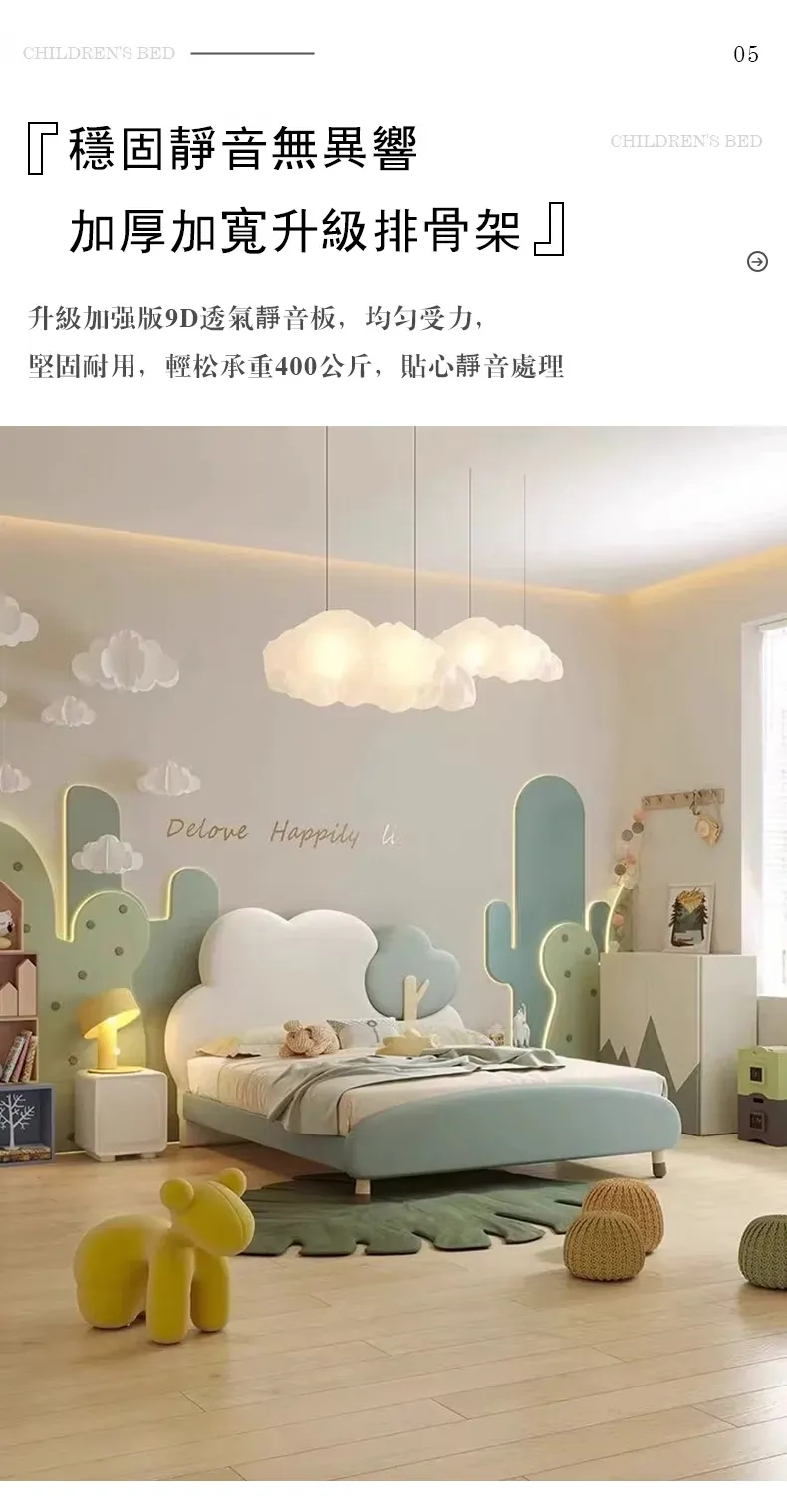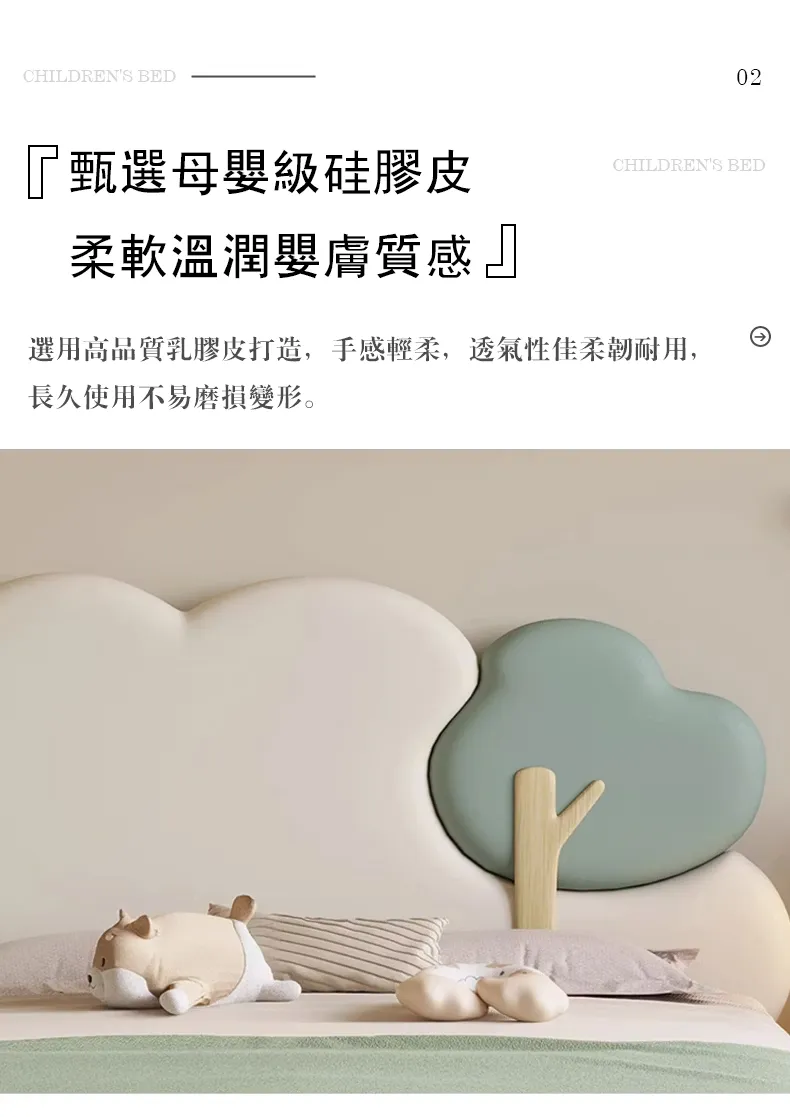 兒童床架,簡約,夢幻新選擇。材質使用透氣乳膠皮,耐磨好清潔。