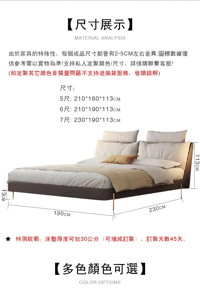 極簡床架,頭靠舒適,撞色設計