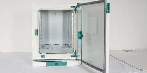 The double door structure adopts high quality glass, easy to observe samples, the door with magnetic strip is easy to be opened and closed, good sealing and open door power-off function.