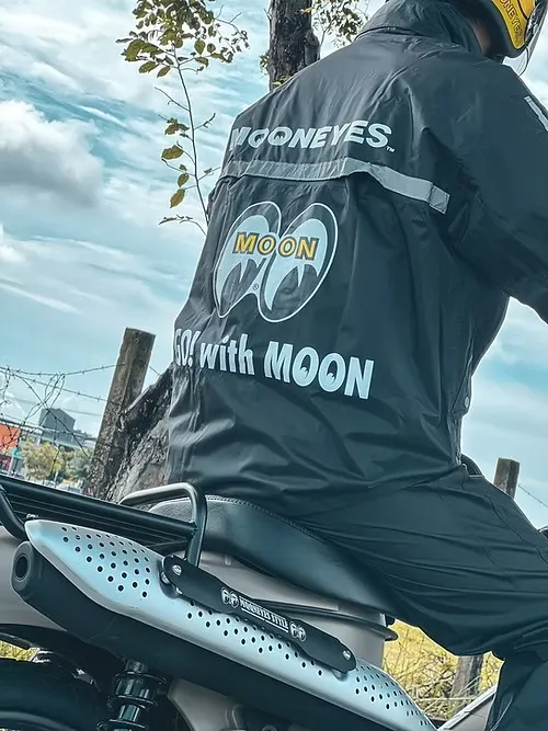 還是彪形大漢,都穿得下我們MOONEYES雨衣,特別講求寬鬆舒適的剪裁更能讓身體在通勤、外送時都非常的方便。