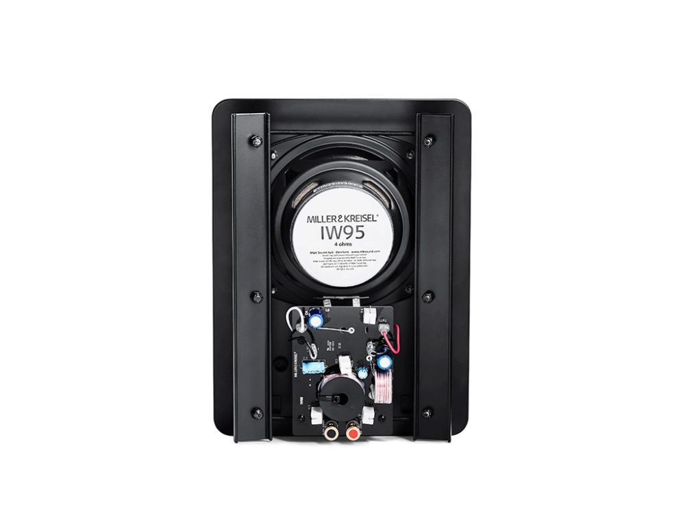 M&K SOUND崁入式喇叭,安裝簡易、穩固不共振,IW95等無箱體崁入式喇叭,獨步業界以「完整鐵片」迫緊牆面與喇叭障版,取代從前牆面鑽孔、鎖螺絲等單點鎖固方式,整面鐵片鎖固更緊更密合,牆面後方更不必增加角料,便利又安全。