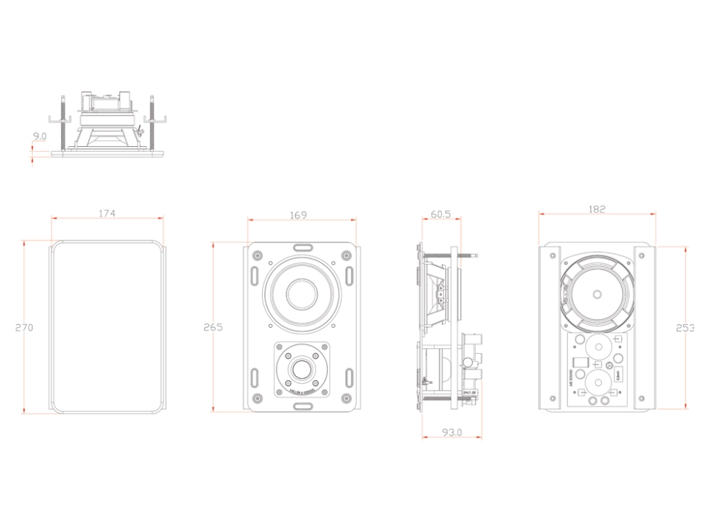 全系列崁入喇叭堅決採用實心鋼製鑄鐵障版,徹底改革崁入喇叭因使用輕材料而形成震動雜訊干擾的問題,同時鑄鐵材質具備極強的剛性及抑震力,提供單體穩固的發聲基礎,中低頻大能量也能盡情表現,鑄鐵材質皆經過熱硬化處理,並有粉末噴塗,可以有效防鏽,在潮濕氣候環境也能放心使用。