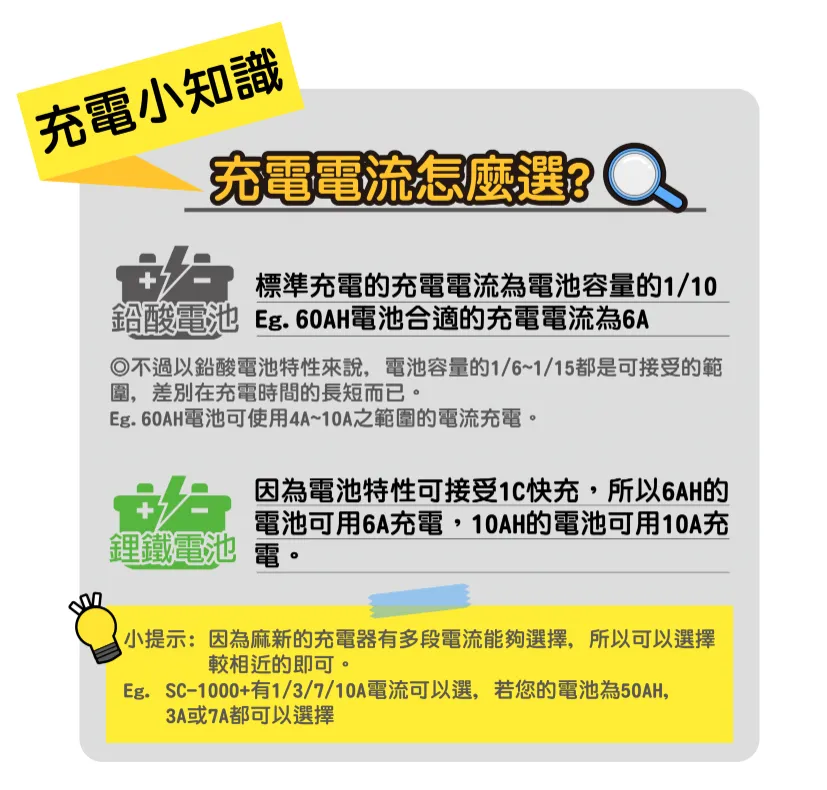 | 適用電池種類 | 加水電池 / 免保養電池 / AGM電池 / 深度循環電池 |