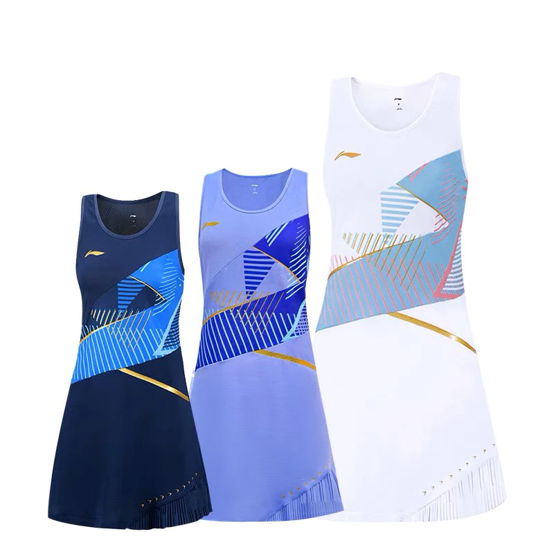 李寧羽毛球服國際球星大賽服女士連衣裙抗菌速乾比賽服 ASKT024