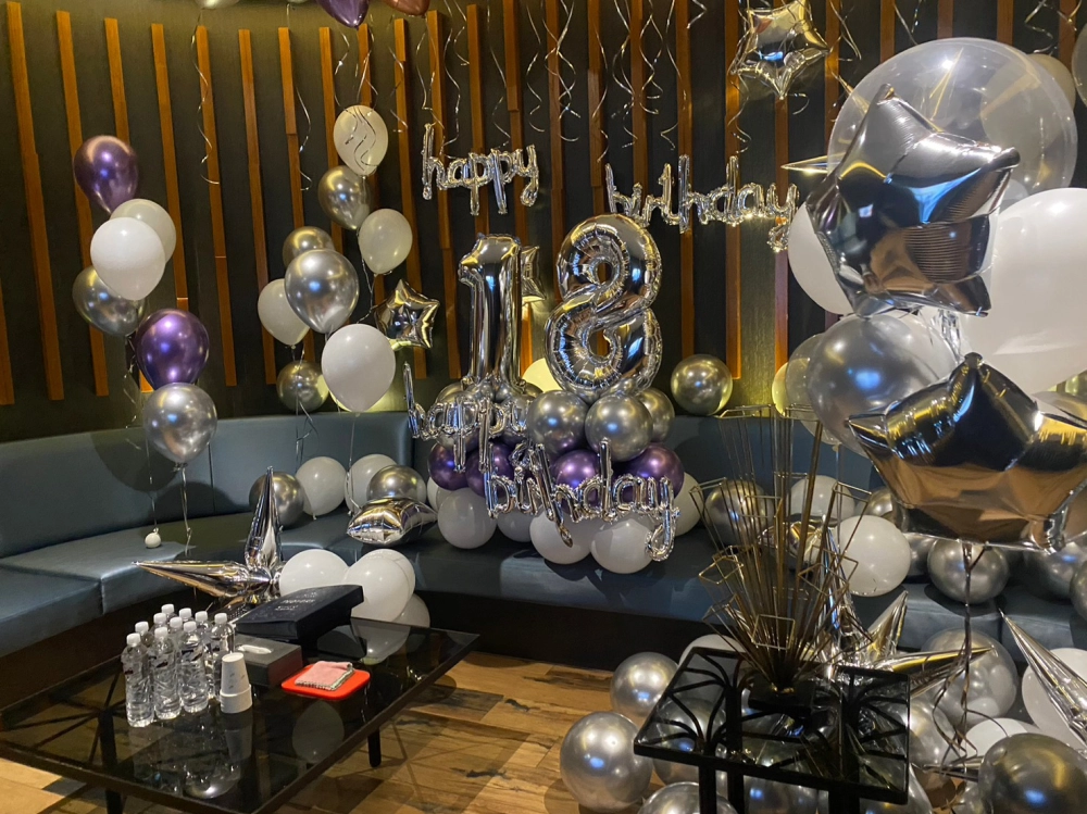 銀色18歲生日氣球套裝佈置