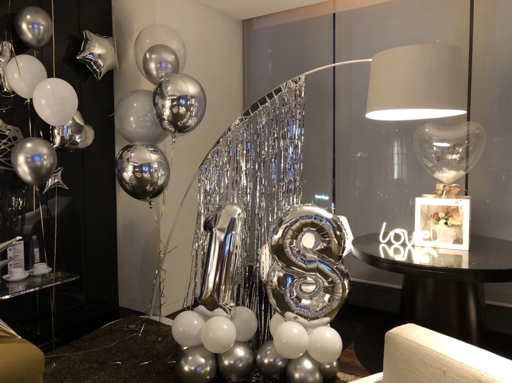 • 【飯店驚喜推薦】高級感銀白氣球房佈置|低調奢華|驚喜慶生|空間裝飾