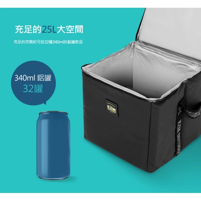 【綠色工場】KAZMI KZM 素面個性保冷袋25L 保冰袋 保冷保溫 生鮮購物 野餐登山露營 (K21T3K07)