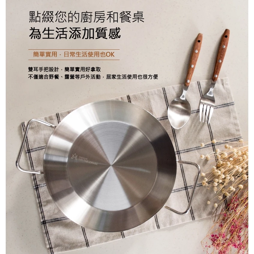🍛304不鏽鋼雙耳圓盤,安全衛生、質感滑順、時尚美觀