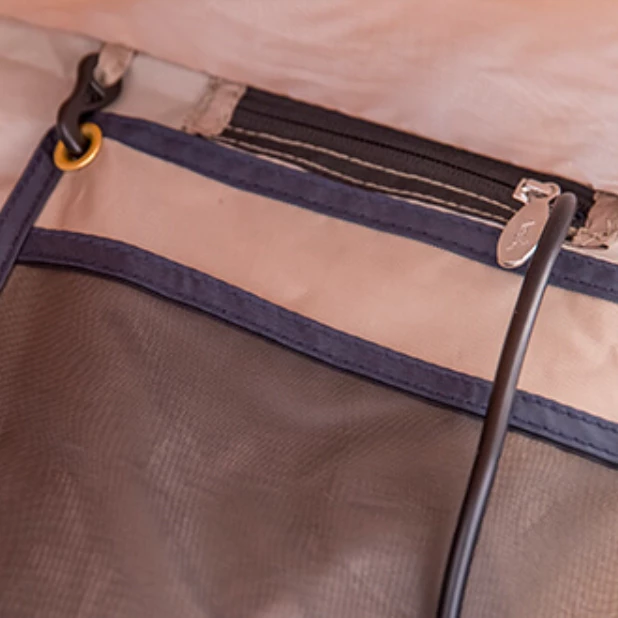 📌位於頂部角落的兩個拉鍊端口可用於穿越電源線