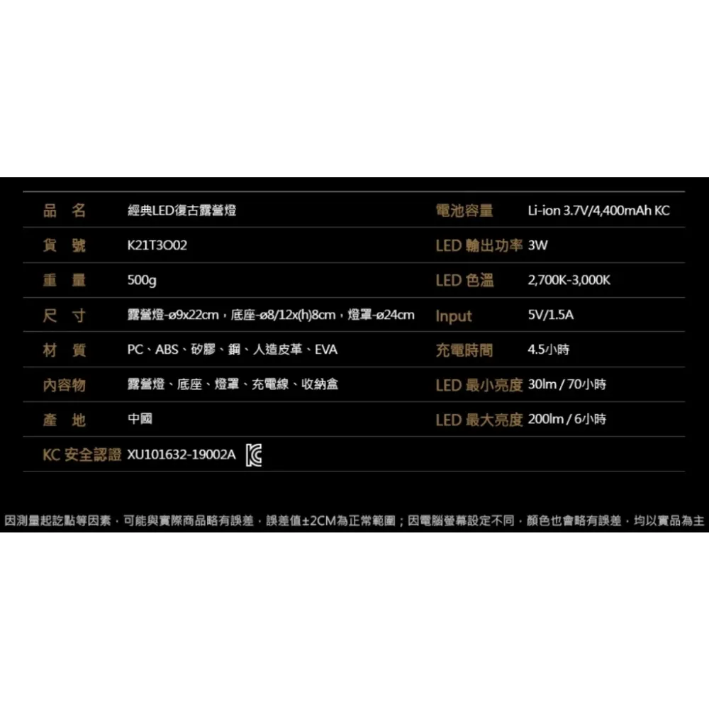 內容物:露營燈、底座、燈罩、充電線、收納盒