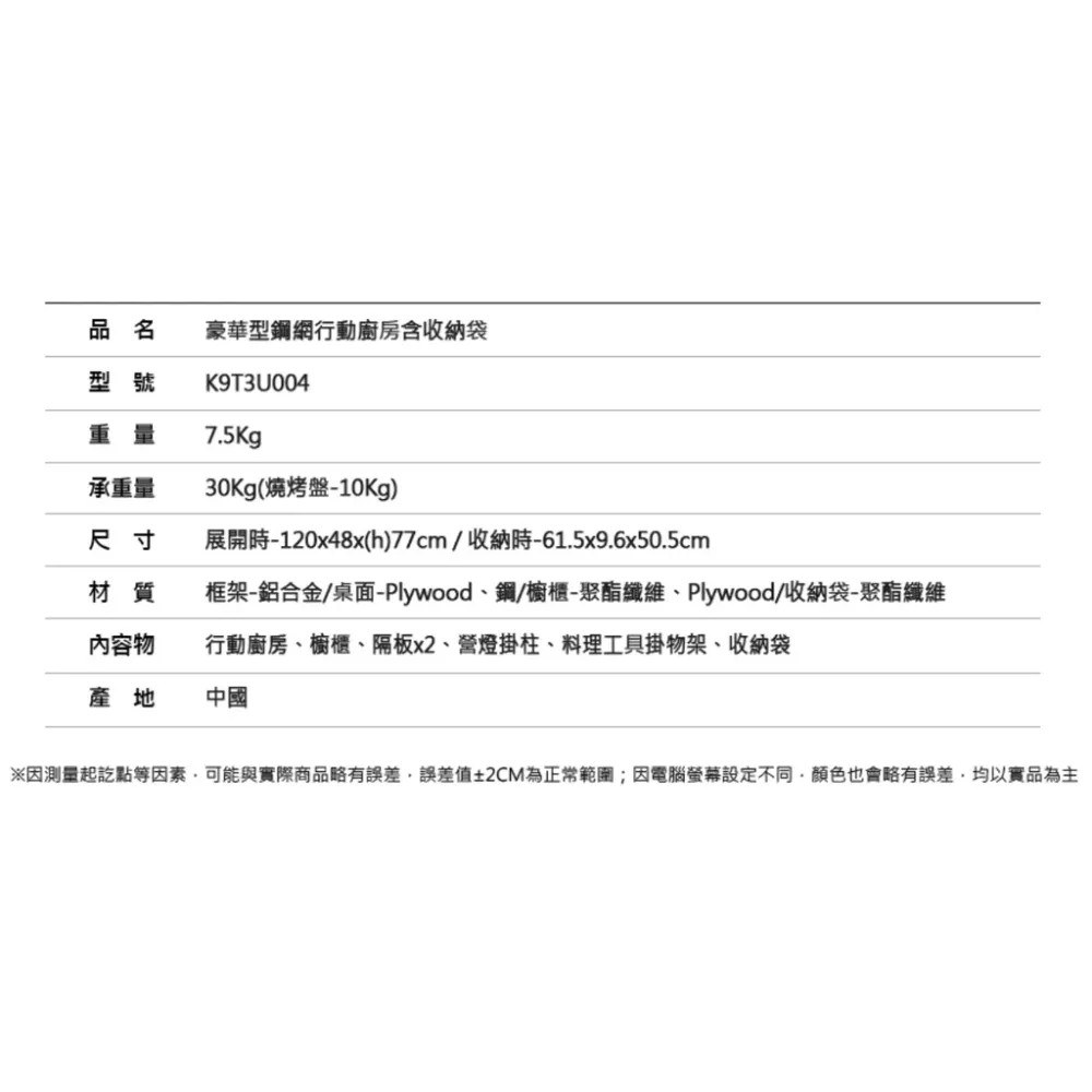 【綠色工場】KAZMI KZM 豪華型鋼網行動廚房含收納袋 摺疊桌 收納桌 露營桌 行動廚房 折桌 (K9T3U004)