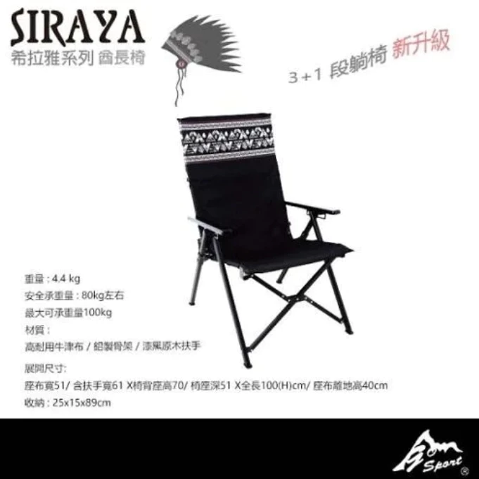 GO SPORT 希拉雅四段躺椅 【綠色工場】高背椅 摺疊椅 露營椅 可調整椅背 大川椅 附收納袋 木扶手