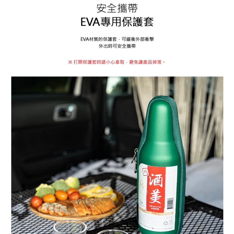 【綠色工場】KAZMI KZM 燒酒杯注酒器套組含保護套 (K21T3K12) 酒杯 紅酒 米酒 啤酒 烈酒 露營酒杯