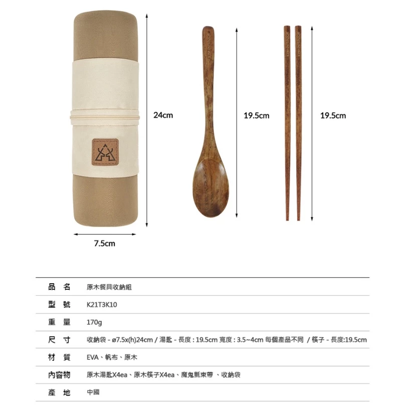 【綠色工場】🔥新品上市🔥KAZMI KZM 原木餐具收納組 附帆布收納袋 4入餐具 湯匙 筷子 露營餐具 露營美學