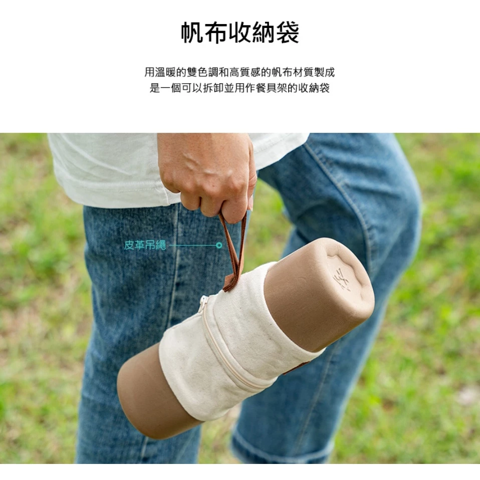🥄用溫暖雙色調及高級帆布製成的可拆卸、可成為餐具架的收納袋