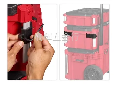 1.牢固鎖定在 PACKOUT™ 工具箱金屬加固角上