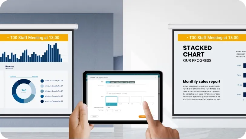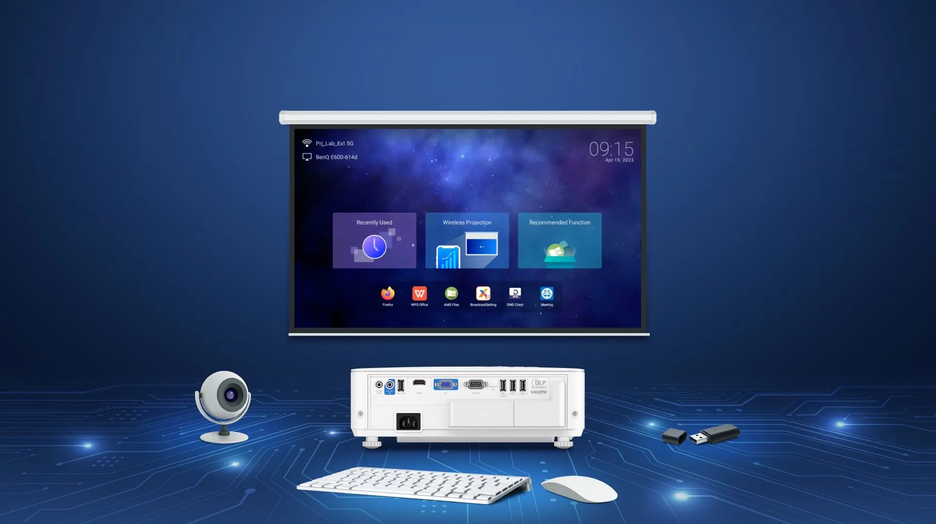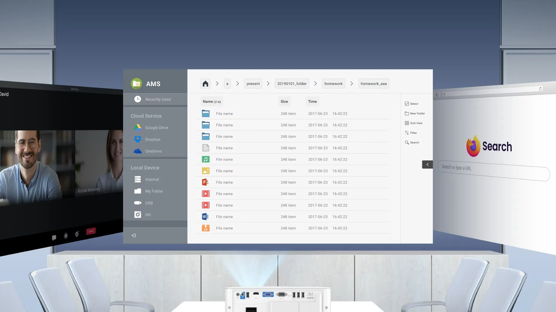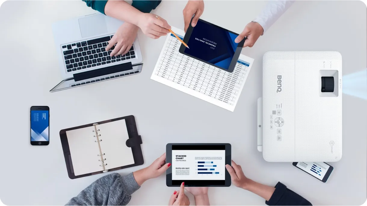 BenQ 智慧投影機預載商務應用程式,支援雲端文件共享、視訊會議和網頁瀏覽,讓會議變得更加高效,節省準備時間。
