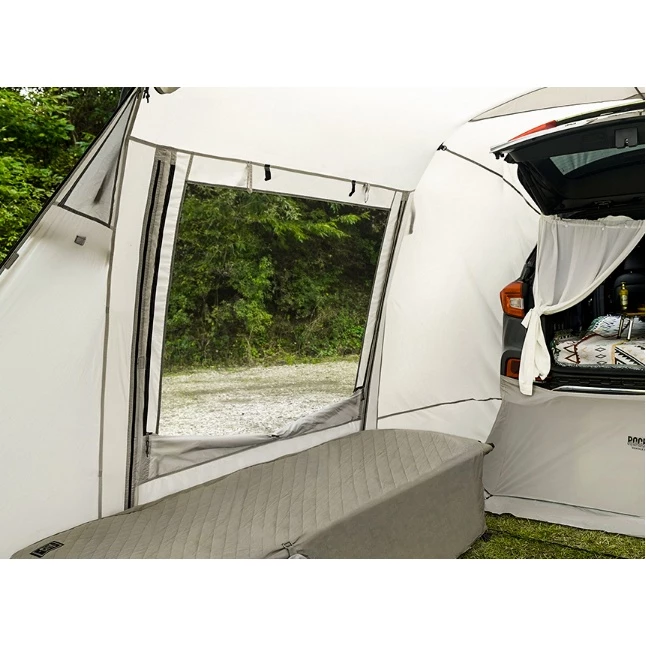兩段式前庭拉起可增加活動空間,放下則可加隱密性、保護隱私